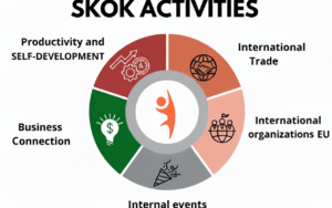 SKOK is a student organization operating at the University of Economics and Business in Prague (VŠE), under the Faculty of International Relations since 2014. Our goal is to provide educational and networking opportunities, helping students develop not only their professional skills through workshops, lectures, excursions, and simulations, but also their organizational and teamwork abilities by getting involved in the club’s activities. By connecting students with companies and industry experts, we help them prepare for their future careers and succeed in the global job market.
